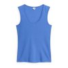 Rezervor cu nervuri din bumbac. Un stil subțire, cu curele zvelte și un decolteu rotunjit.