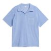 Cămașă cu mânecă scurtă lucrată dintr-o cârpă moale de prosop de bumbac. Cu un guler deschis și un singur buzunar piept.