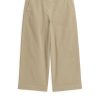 Chinos cu talie înaltă, cu picioarele decupate, late. Fabricat dintr -un amestec de bumbac și lenjerie. Buzunare frontale înclinate și buzunare de plasture în spate. Închiderea butonului și zboară cu fermoar. bucle de curea.