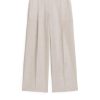 Chinoii cu picioare largi, confecționate dintr-un bumbac întins din bumbac. Un stil cu talie înaltă detaliat cu buzunare laterale și buzunare cu o singură garnitură butonată în spate. Bucle de curea, zboară cu fermoar.