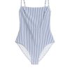 Costum de baie realizat dintr -o țesătură întinsă cu o suprafață mat. Cu bretele largi de umăr și un decolteu rotunjit, tăiat scăzut în spate. Deschiderea picioarelor înalte. căptușit în față.