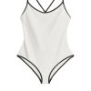 Costum de baie cu un umăr, cu o suprafață scârțâită. detaliat cu cusături în zig-zag la margini și căptușeală în față. Deschidere cu picioare mari și înregistrare pe marginea bustului pentru a rămâne pe loc.