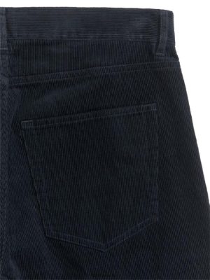 pantaloni în bumbac inspirați de denimuri clasice. Un stil cu cinci buzunare, cu un picior larg, ușor de butoi. detaliat cu deschiderea butonului și zborii cu fermoar.