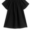 Rochie de vară curgătoare realizată dintr -o țesătură de muselină din bumbac aerisită și moale. Ușor de aruncat și de îmbrăcat în sus sau în jos. Detaliu cu mâneci și adunări scurte de puf în partea de jos.