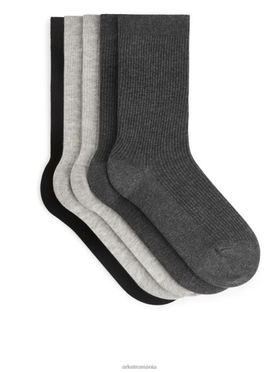 ARKET Șosete de coaste de bumbac set de 5 gri gri/gri închis/negru – Arket Clothing 2TNX8570 bărbați