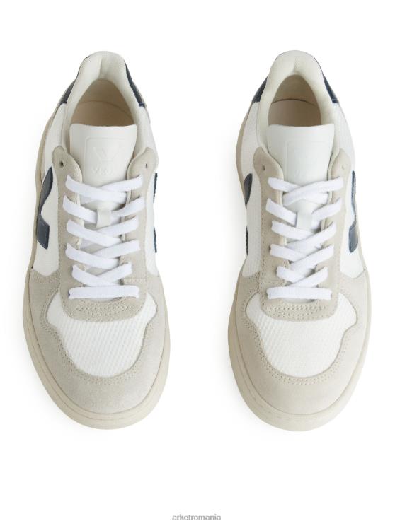 Un pantof atletic proiectat curat, stabil și confortabil amortizat, realizat din piele și cauciuc tranzacționat din punct de vedere etic și destul de tranzacționat, silueta V-10 a fost lansată în 2016 pentru a sărbători a 10-a aniversare a lui Veja. Dispune de o cutie de vârf de plasă, un V-logo pe ambele părți și căptușeală moale de bumbac organic.