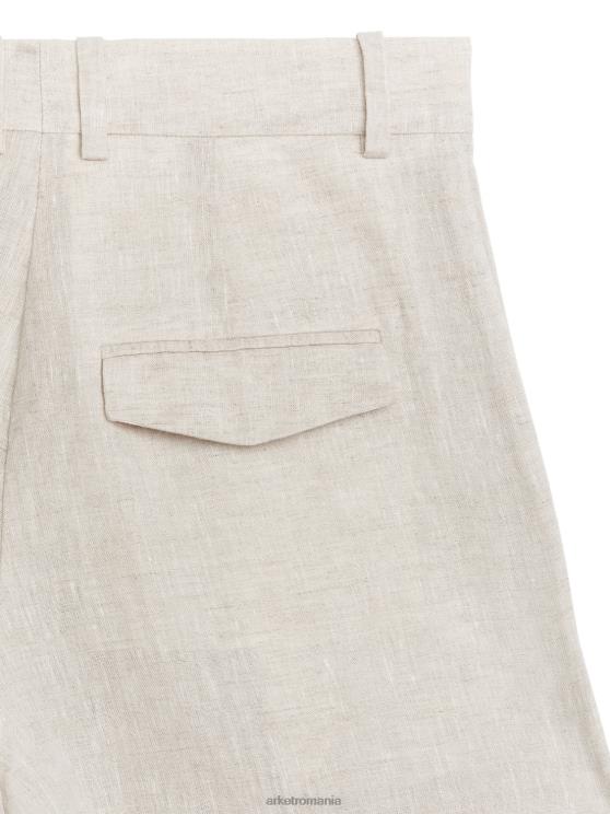 acești pantaloni cu talie medie, cu lungime completă, sunt țesute din lenjerie pură. O potrivire dreaptă cu cute de presă și pliuri în față, oferind stilului o draperie grațioasă.