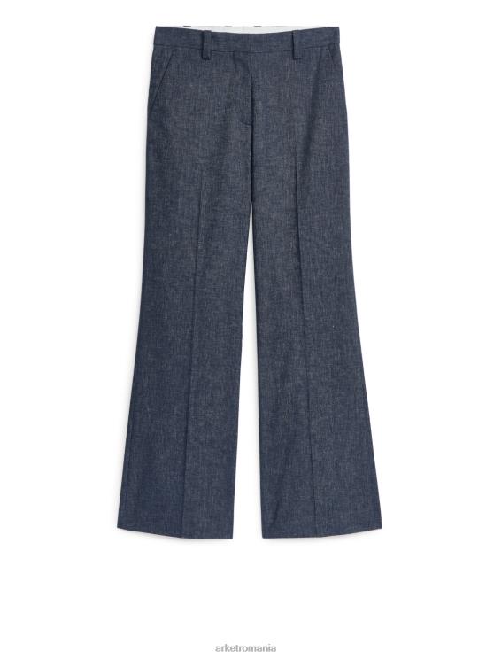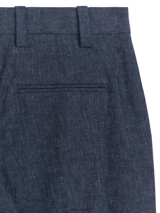 Pantaloni neliniați cu picioarele evazate confecționate dintr -un amestec de bumbac și lenjerie. detaliat cu cute de presă și o bandă de talie cu finisaj curat. Două buzunare înclinate în față și un buzunar dublu de gunoi în spate.