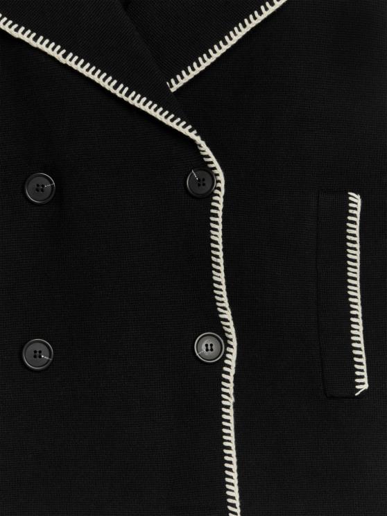 Jacheta cu piept dublu tricotat dintr-un amestec de bumbac. Un stil relaxat de potrivire cu cusături cu pătură în culoarea contrastantă în jurul marginilor. detaliat cu buzunare laterale.
