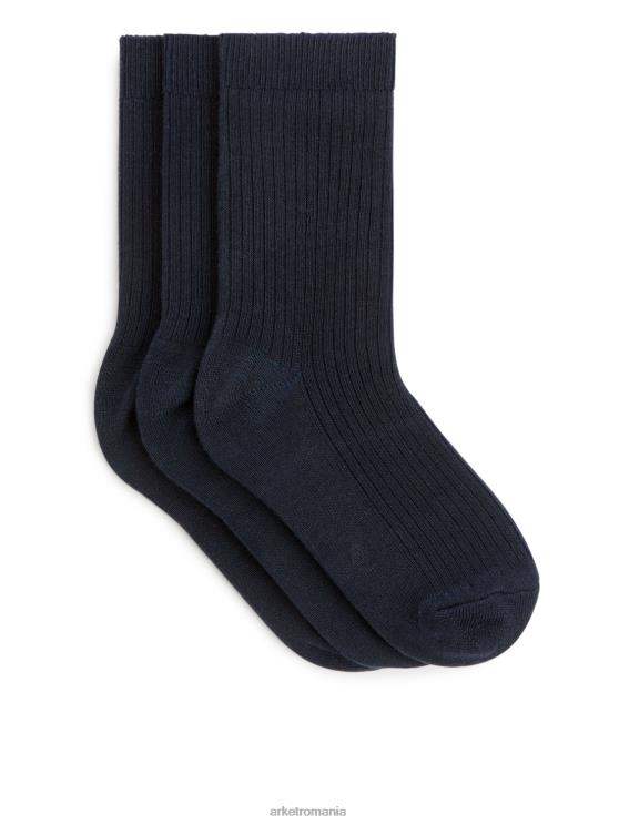 ARKET șosete tricotate cu coaste, 3 perechi albastru închis – Arket Clothing 2TNX81595 copii