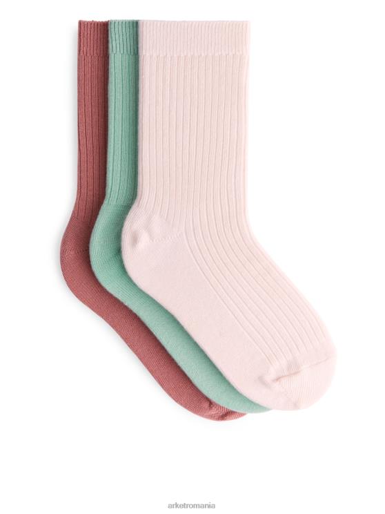 ARKET șosete tricotate cu coaste, 3 perechi roz/verde – Arket România 2TNX81610 copii