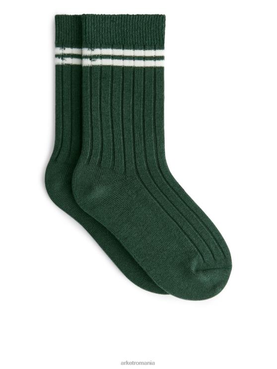 ARKET șosete tricotate cu coaste de 2 Verde închis/Off alb – Arket Clothing 2TNX81611 copii